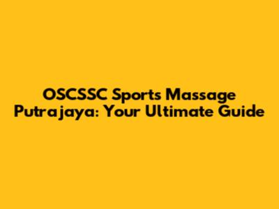 OSCSSC Sports Massage In Putrajaya: Your Ultimate Guide