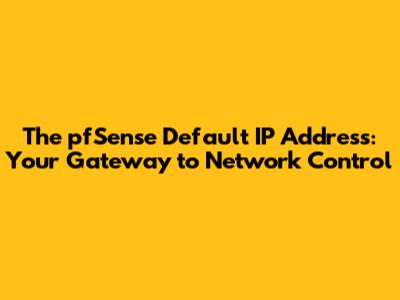 PfSense Default IP Address: A Quick Guide