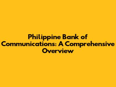 Philippine Bank Of Communications: A Comprehensive Overview